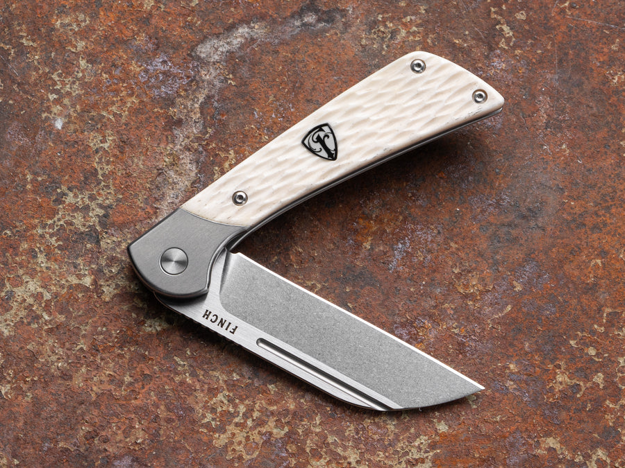 Inferno scales are made from gold glitter resin. Each knife will have a different look with variations in every scale. The Hellfire knives also have the sapphire Finch logo embedded into the scales.
