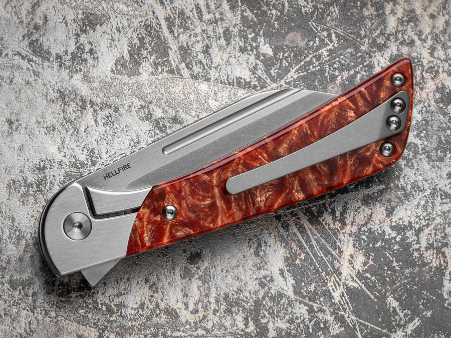 Here is our HELLFIRE pocket knife, fully capable for your next ground to ground urban mission.