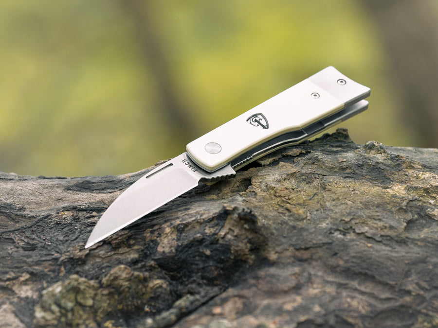 The McCoy Ivory Micarta is smooth to the touch with a look and feel of smooth bone or ivory, but the toughness and reliability of micarta.