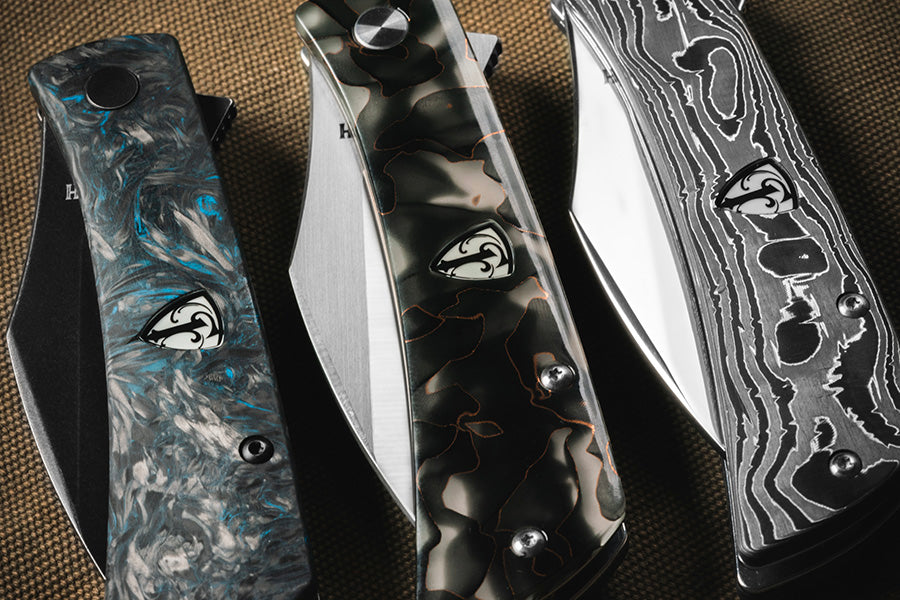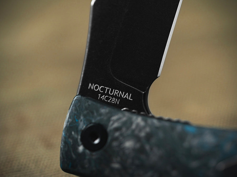 The Nocturnal offers three distinct handle options to suit your style and needs. The Silver Sonic features sleek carbon fiber with a shimmering, high-tech finish, while the Dark Matter handle pairs bold fat carbon fiber with a rugged black wash blade for a stealthy, tactical look. For something truly unique, the Glow resin handle absorbs light and glows in the dark, making it easy to spot even in low-light conditions. Each option provides a balance of durability and style, perfectly matched with the precision blade finishes.