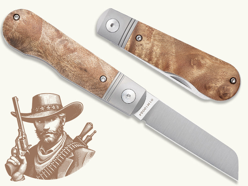 Crafted with timeless charm, this version of the Peacemaker combines burlwood scales, sandblasted titanium bolsters, and a brushed M390 blade. This Barlow-style slip joint celebrates tradition with an elevated, modern edge.