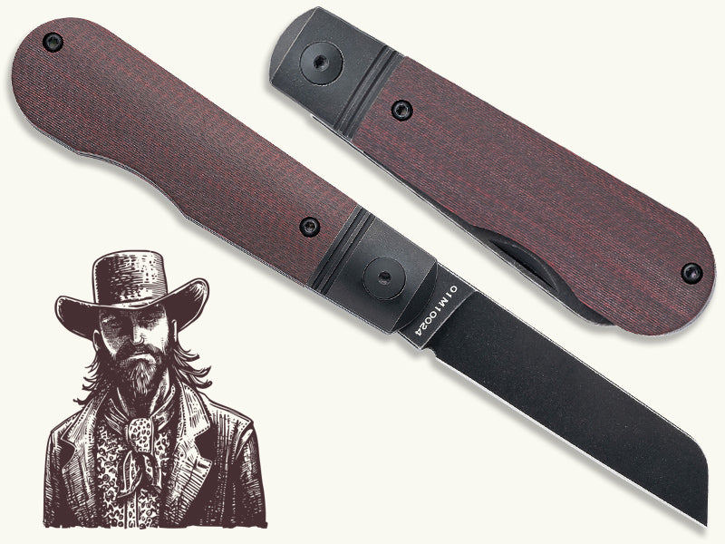 The Peacemaker Red River is rugged and resilient, featuring Red River carbon fiber scales, a matching black wash bolster and a black wash M390 blade. Designed to make a statement, this Barlow-style slip joint embodies strength and style.